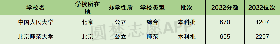 综上中国人民大学和北京师范大学,只比较所在地区的分数线,整体上看中国人民大学在分数线上高一些。