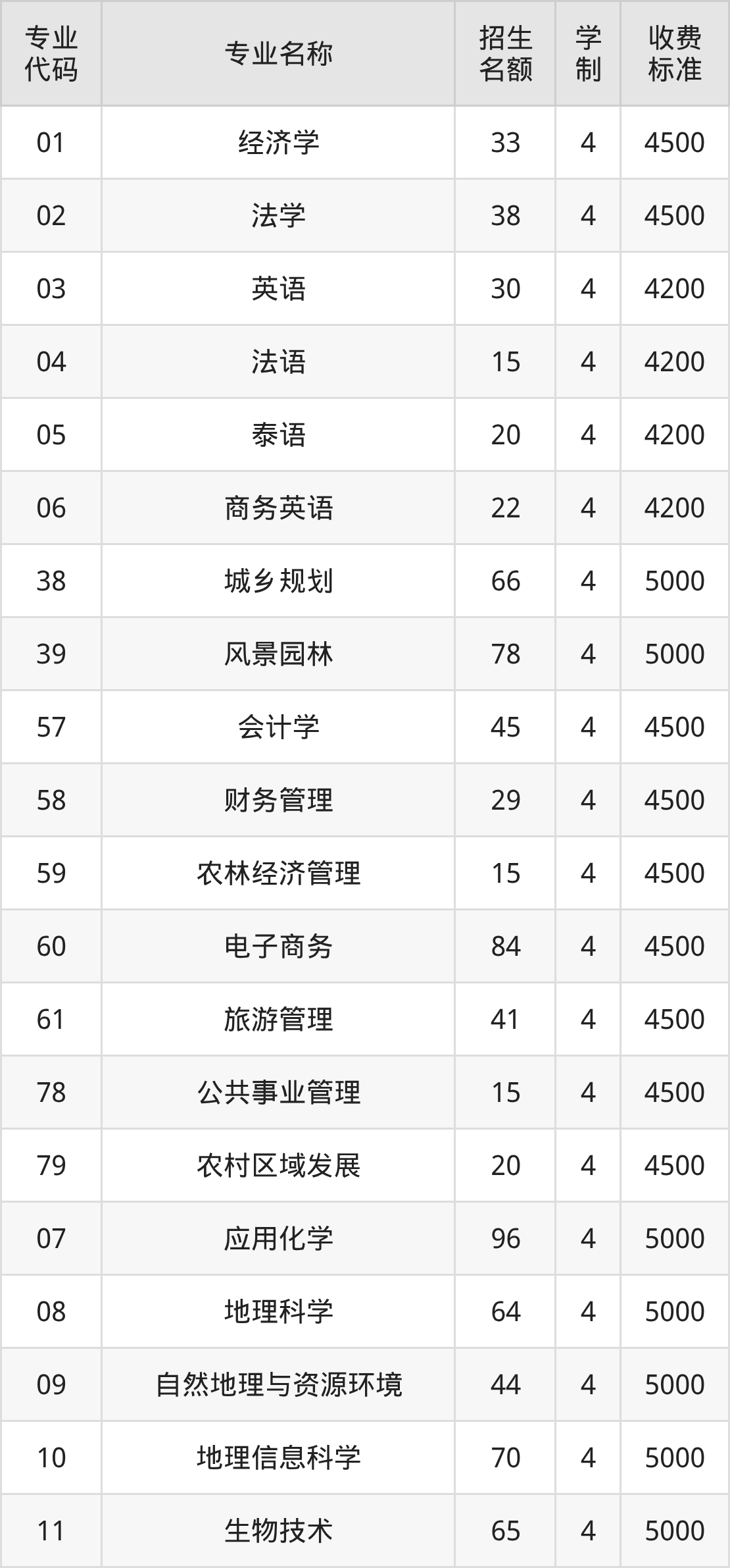 | 11 | 农林经济管理 | 11 | 4 | 4500 |