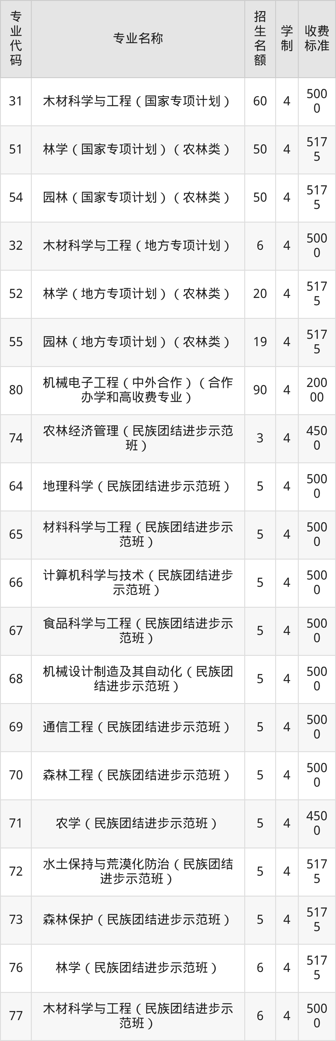 下方展示的是最新完整版本的招生计划,请想要报考西南林业大学的同学参考!
