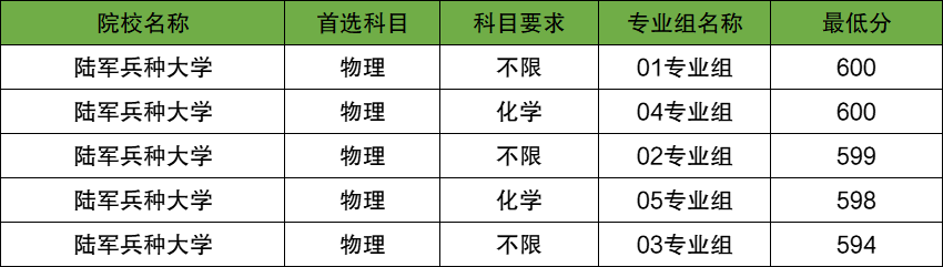 2025年陆军兵种大学在江苏省物理类最低594分。