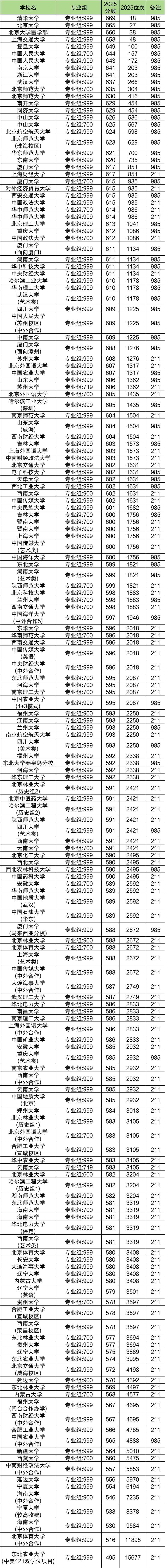 985大学中收分最高的是清华大学专业组:999(669分)、211大学收分最高的则是上海财经大学专业组:999(617分),完整名单及分数线一览表如下: