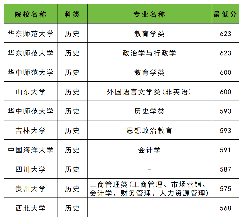 华东师范大学:教育学类623分、政治学与行政学623分;