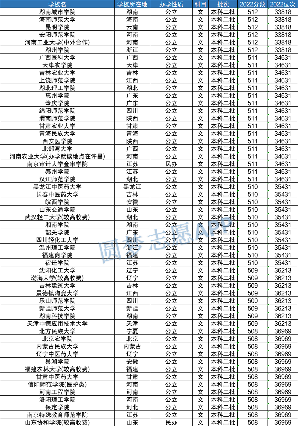 可以看到,2022年河南省高考510分左右的文科考生可以报考湖南城市学院、海南师范大学、昆明学院等。