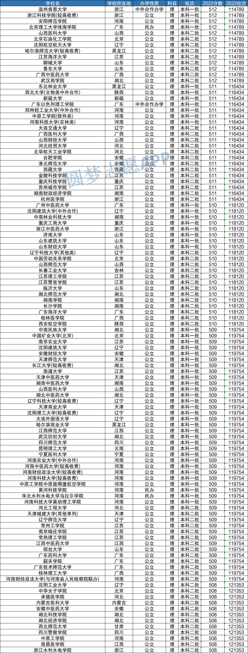 可以看到,2022年河南省高考510分左右的理科考生可以报考温州肯恩大学、安阳师范学院、山西医科大学等。