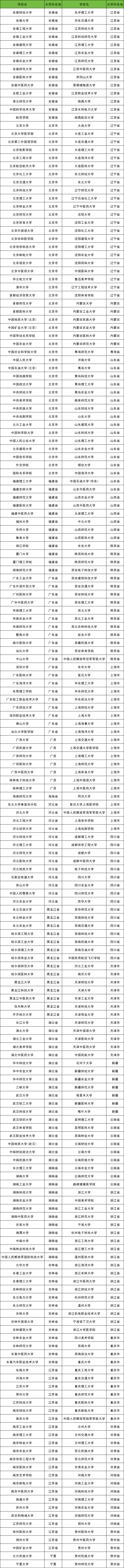 下面是重点高校分布各省情况(滑动查阅):