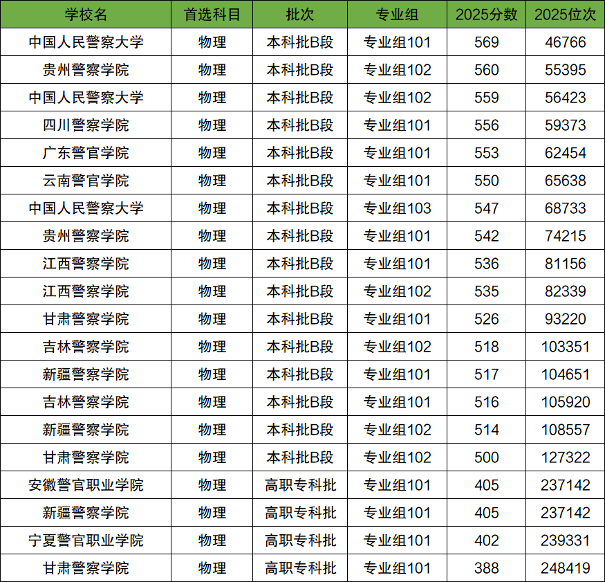 下面是2025全国公安警察大学在四川物理类招生的录取分数线一览表。