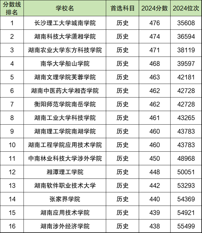2024年湖南民办二本大学在历史类的最低录取分数线位于438分~476分之间。