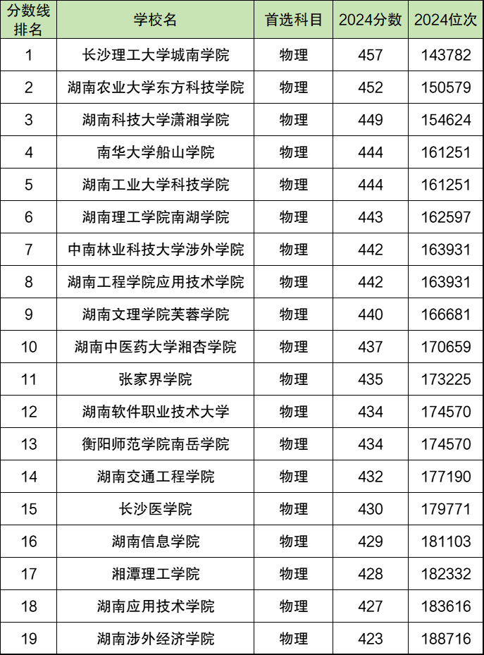 2024年湖南民办二本大学在物理类的最低录取分数线位于442分~457分之间。