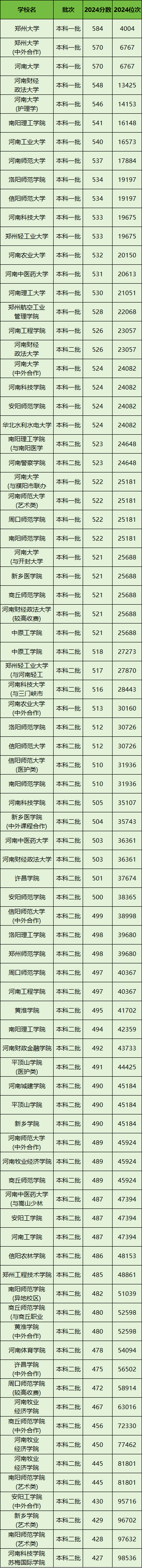 本文整理的是2024年河南省所有公办本科大学录取分数线,供2025年的考生们参考。
