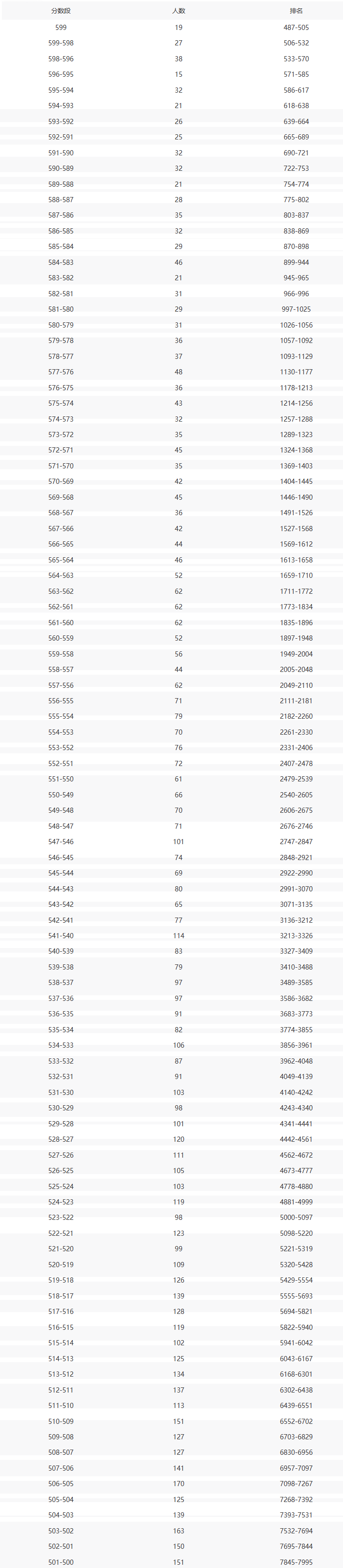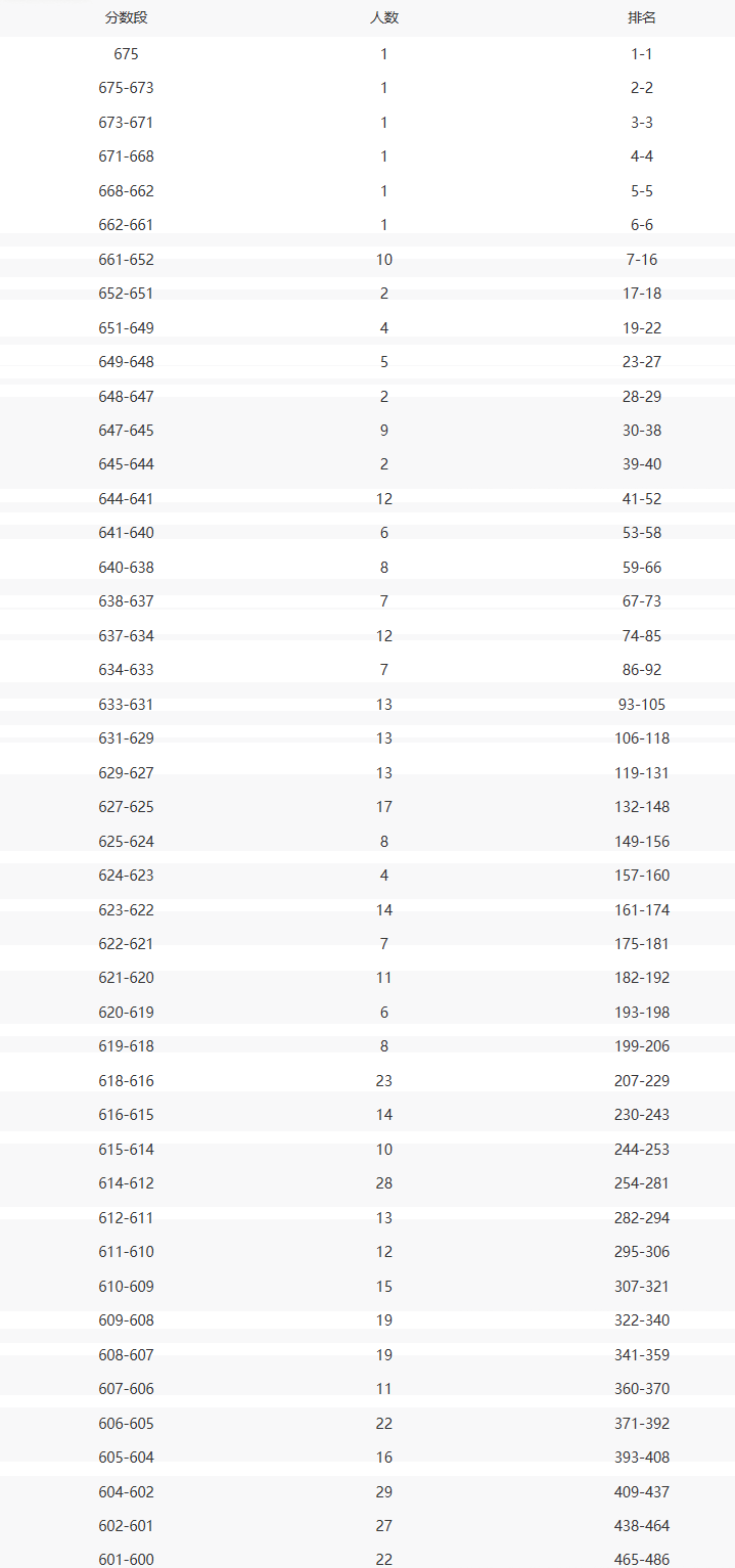 600分:排第486名;