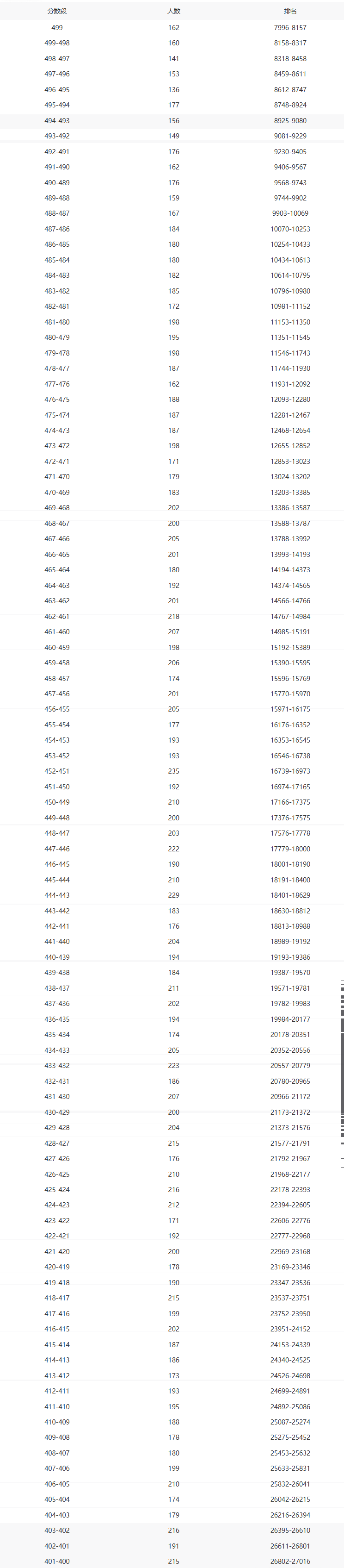 400分:排第27016名;