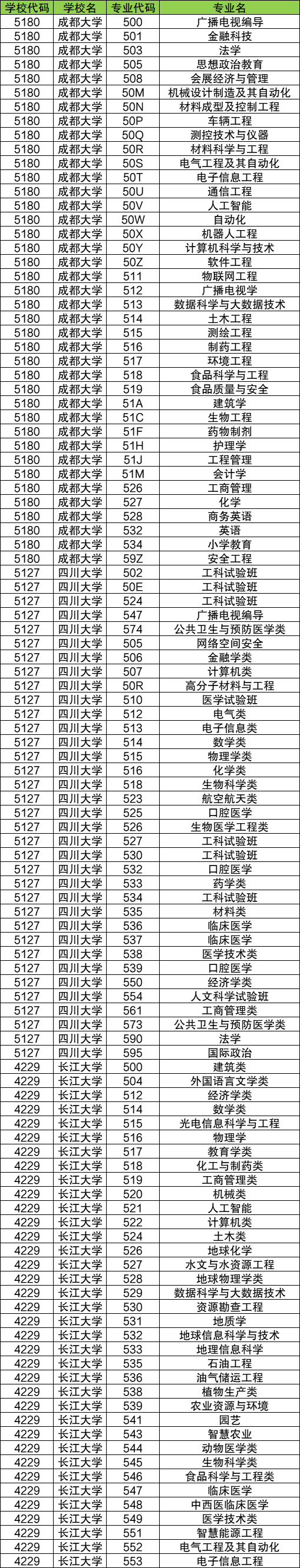 参考最新一年重庆高考志愿填报招生计划表,这里将列举部分本科院校的物理类院校代码、专业代码,以供同学们参考(2025年请以正式发布的招生计划表代码为准):