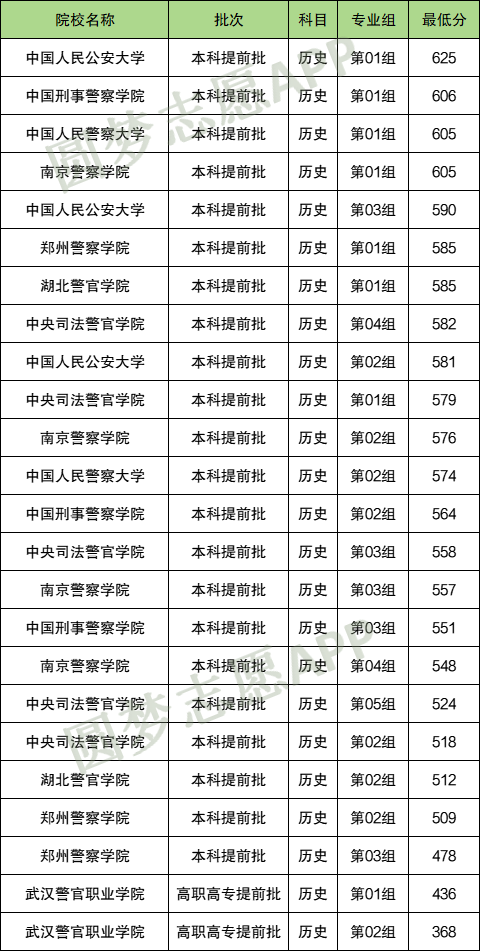 在湖北历史类投档分数线最高的院校专业组是中国人民公安大学01组,2024年分数线是625分;投档分数线最低的院校专业组是武汉警官职业学院02组,2024年分数线是368分。