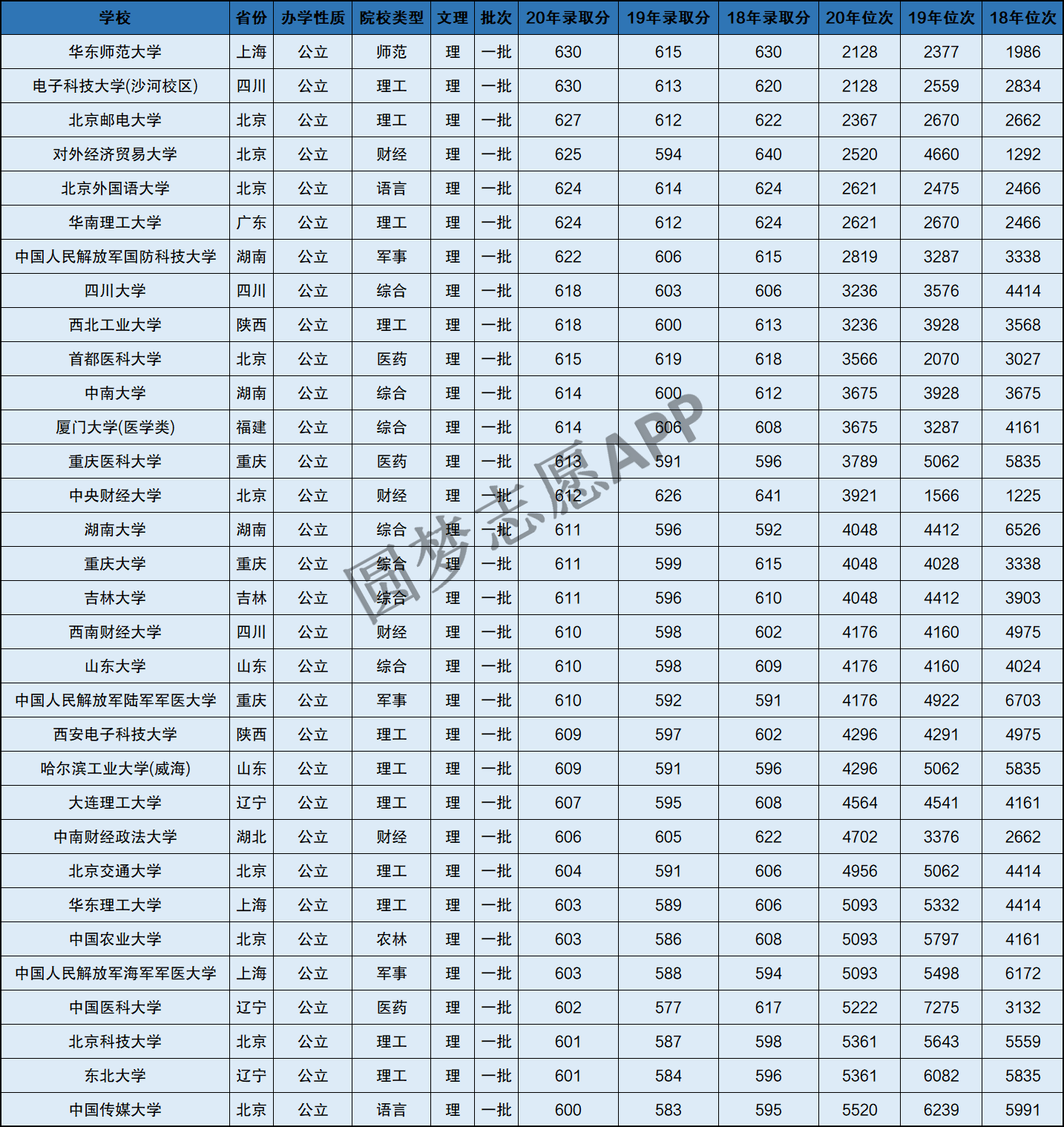 总结:从20年情况来看,理科达到600分的考生大多都有85高校可以报考,文科600分同学可能有985高校可以报考。其它省市同学如果想要了解更多的信息,可以下载圆梦志愿APP来进行快速的查询。
