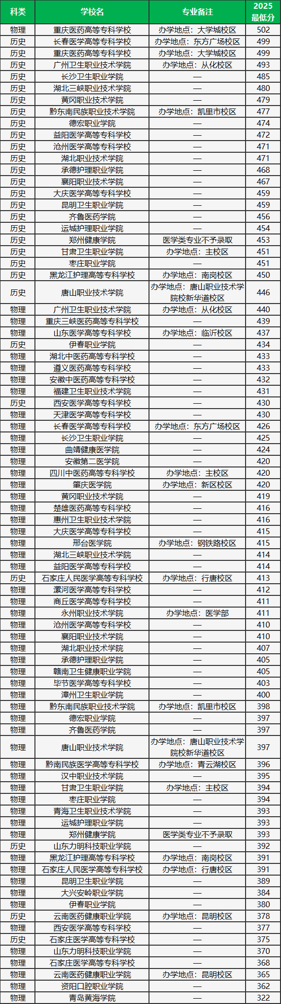 2025口腔医学专业大专录取分数线一览表见下(图片需滑动查看):