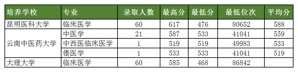 在云南招生的定向免费医学生院校仅招收物理组考生,本文就先为大家整理出各院校在云南招生定向医学生的最低分数线: