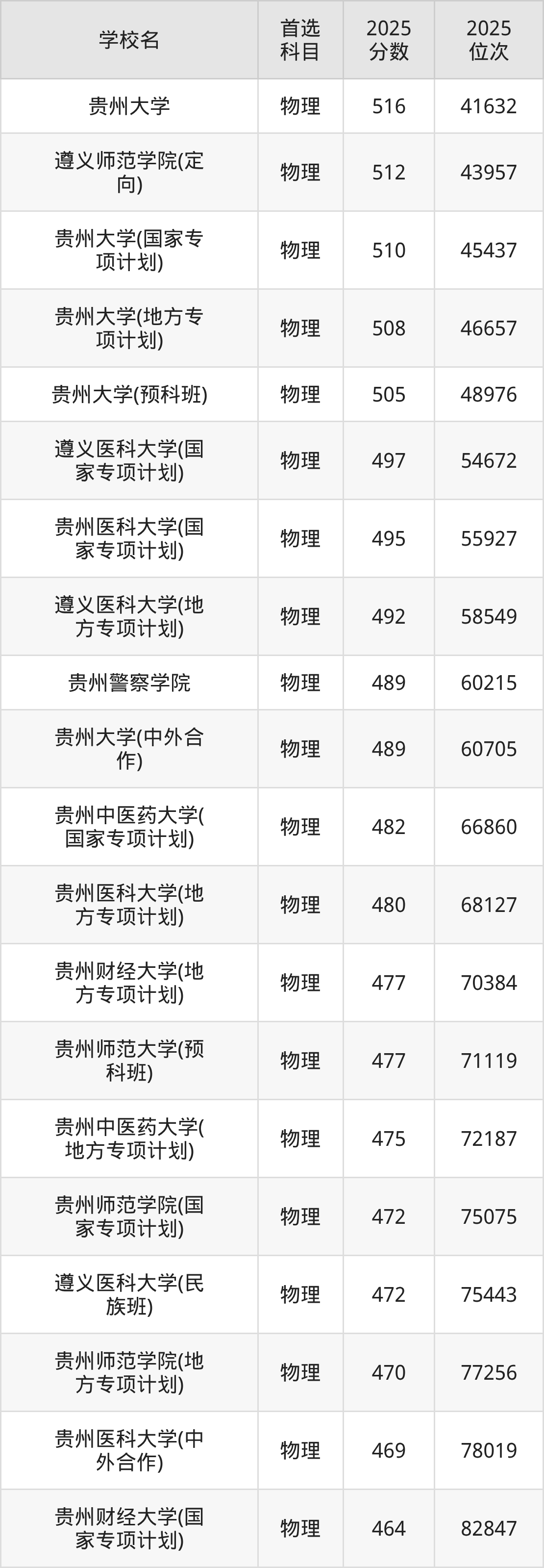 贵州大学(预科班):505分、位次48976名。