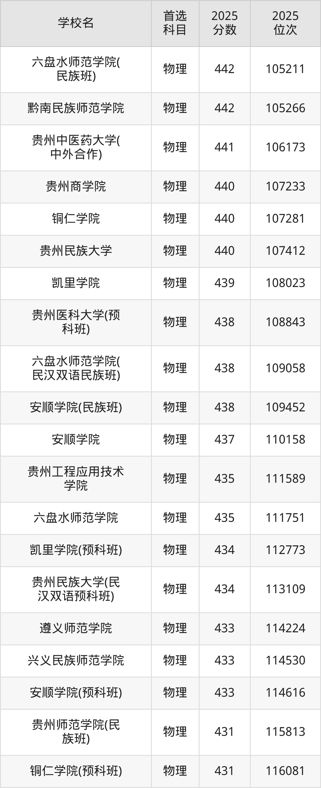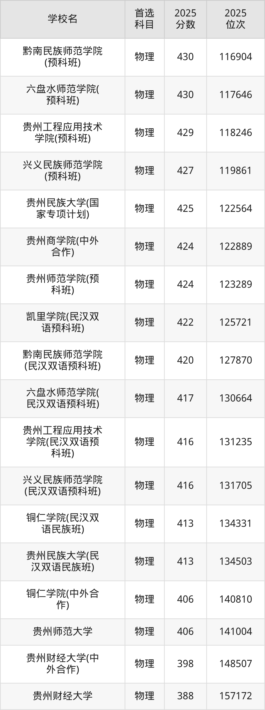 按照贵州省所有公办本科大学2025年在贵州省录取分数线高低排名,为大家整理以下内容。