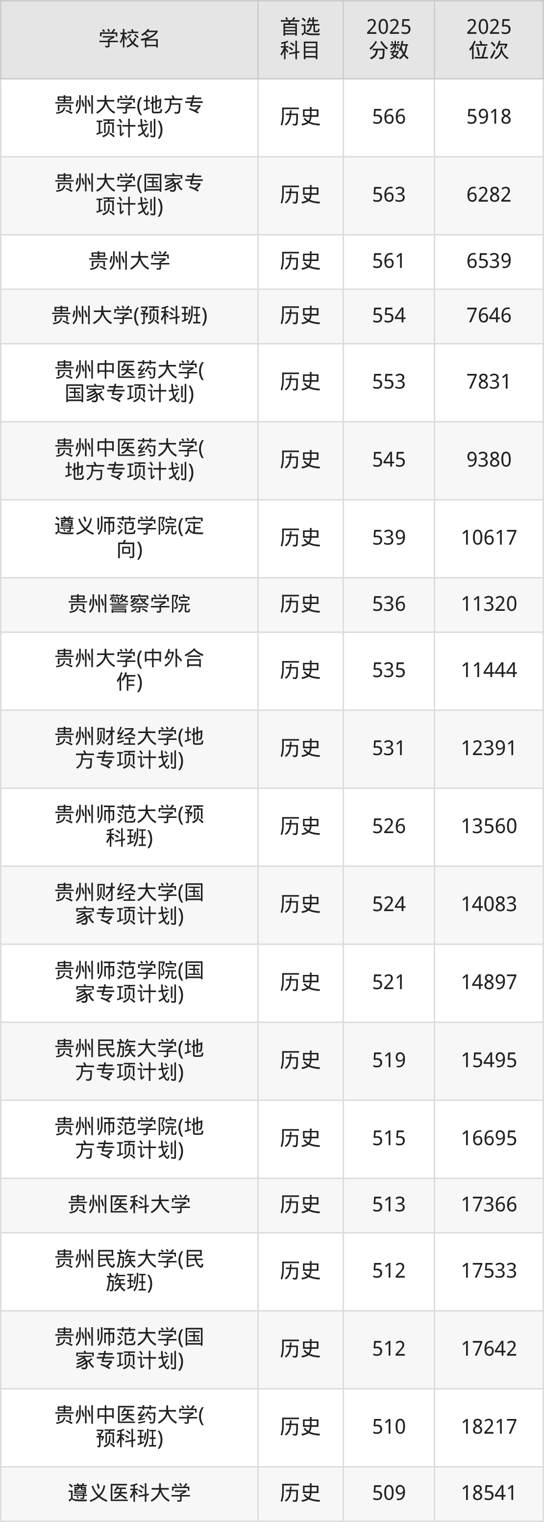 贵州大学(地方专项计划):566分、位次5918名;