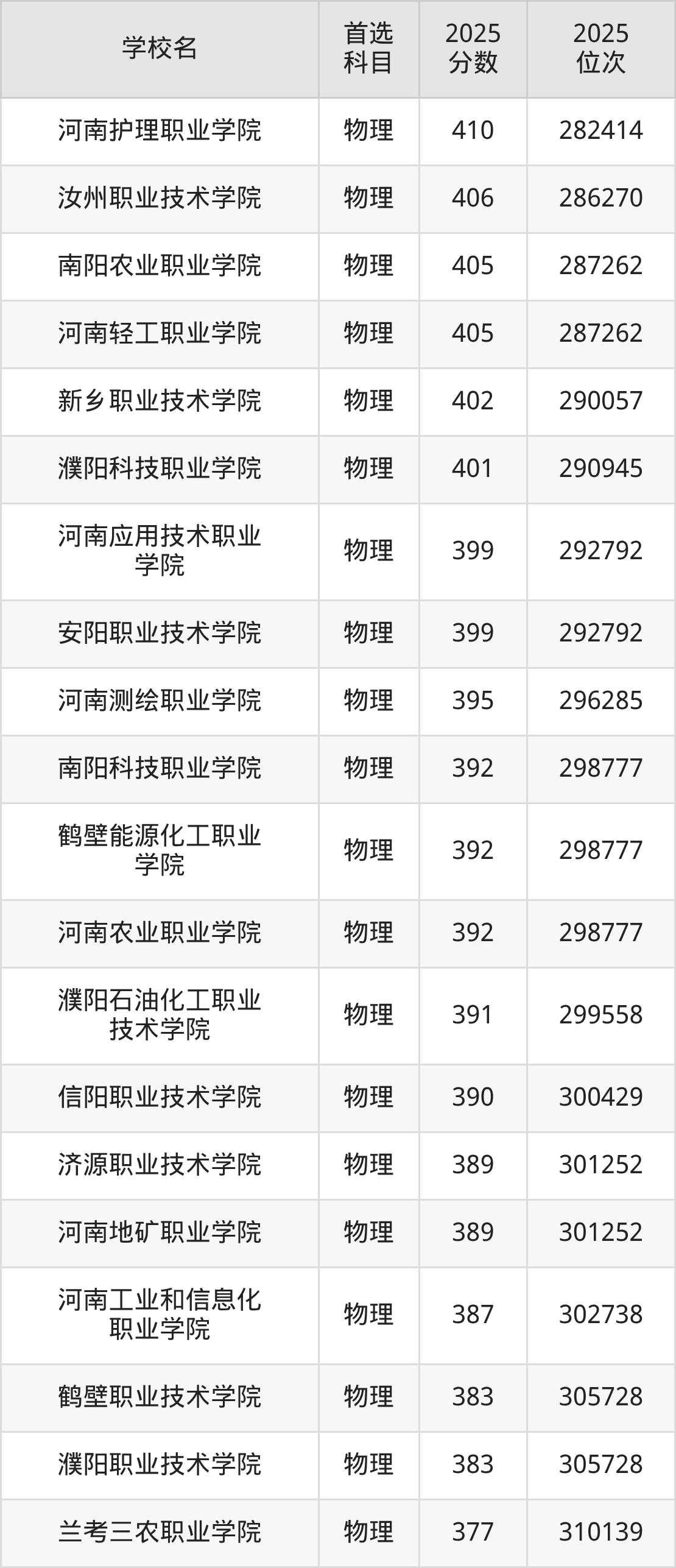 按照河南省所有专科院校2025年在河北省录取分数线高低排名(河南专科投档分考试院未公布),为大家整理以下内容。