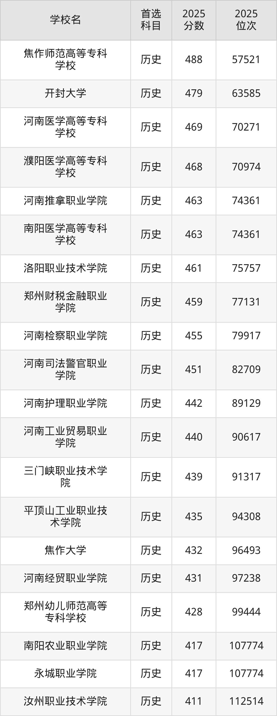 本文将收集河南专科院校名单及2025年招生分数线情况,以便2026届考生择校参考。
