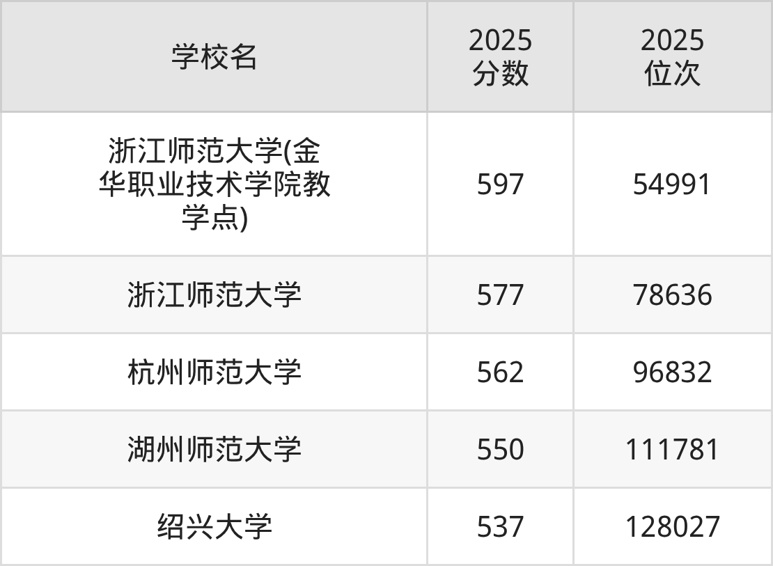 按照浙江省所有师范类大学2025年在浙江省录取分数线高低排名,为大家整理以下内容。