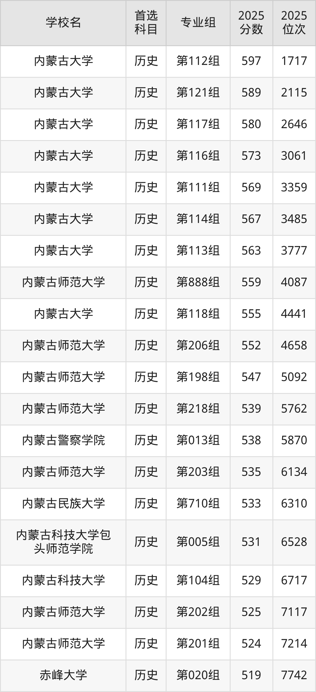 内蒙古大学第112组:597分、位次1717名;