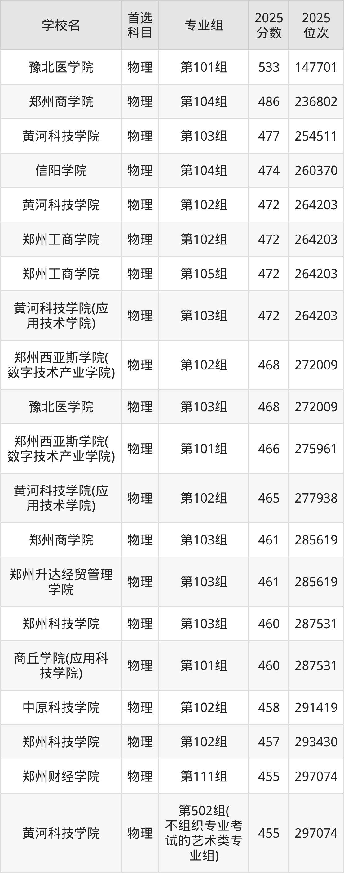 黄河科技学院第103组:477分、位次254511名;