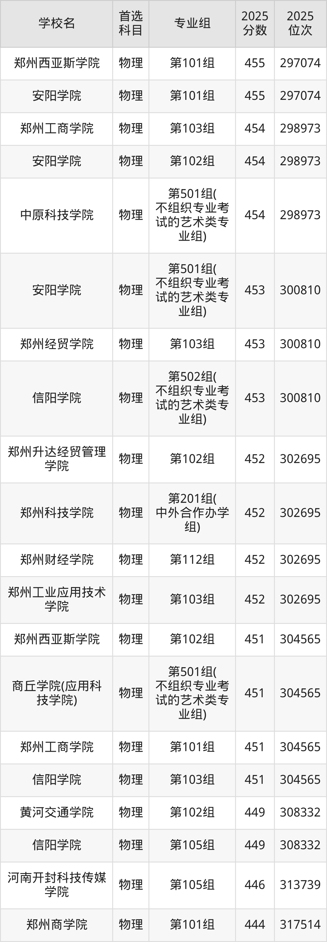 郑州升达经贸管理学院第101组:506分、位次57662名;