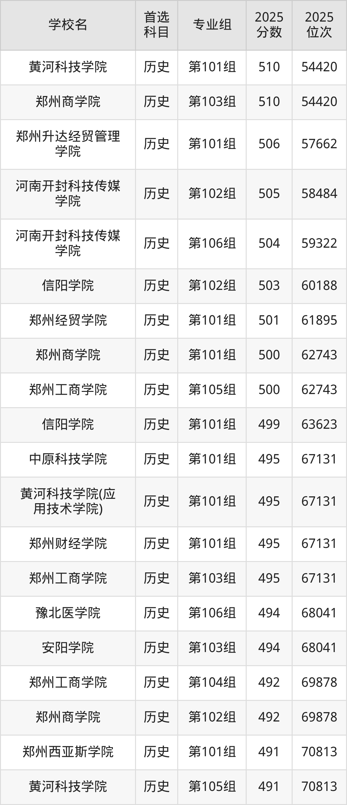 郑州商学院第103组:510分、位次54420名;