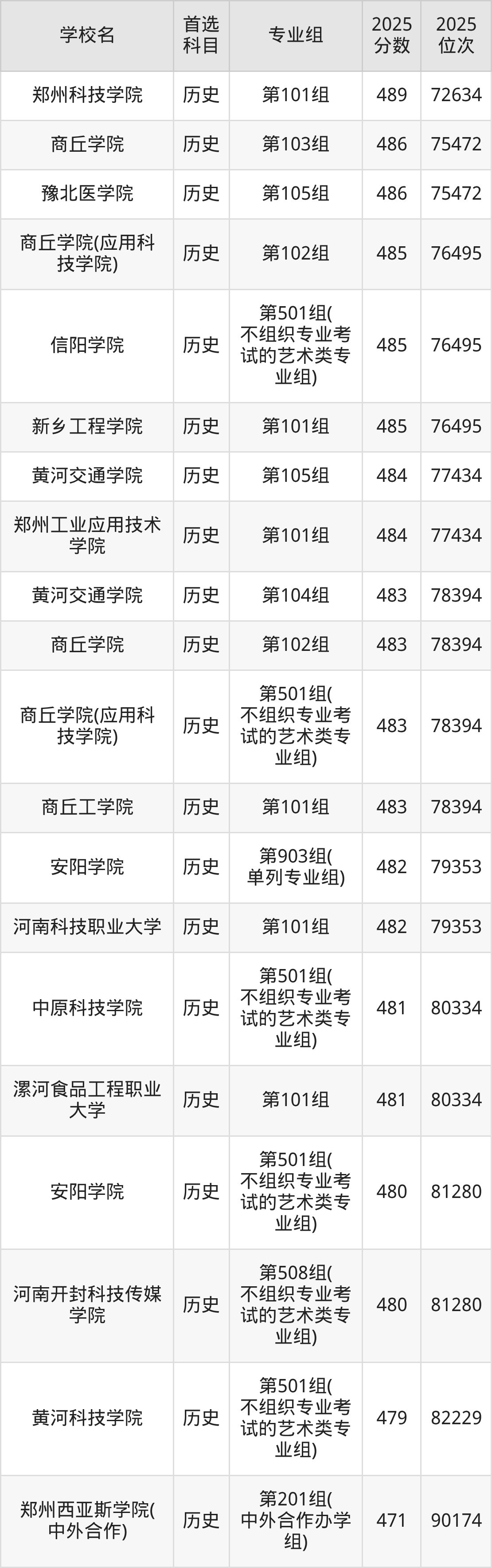 郑州商学院第104组:486分、位次236802名;