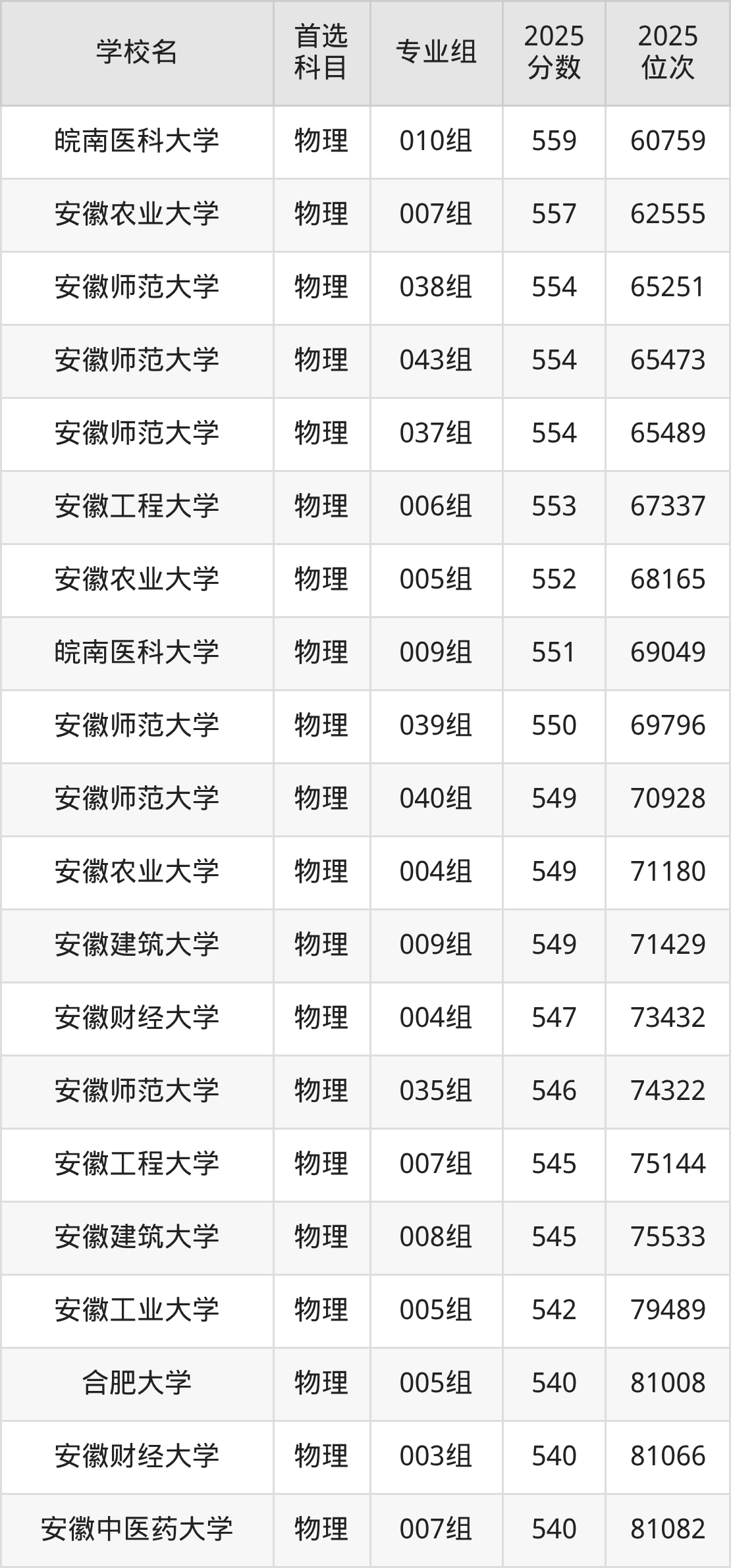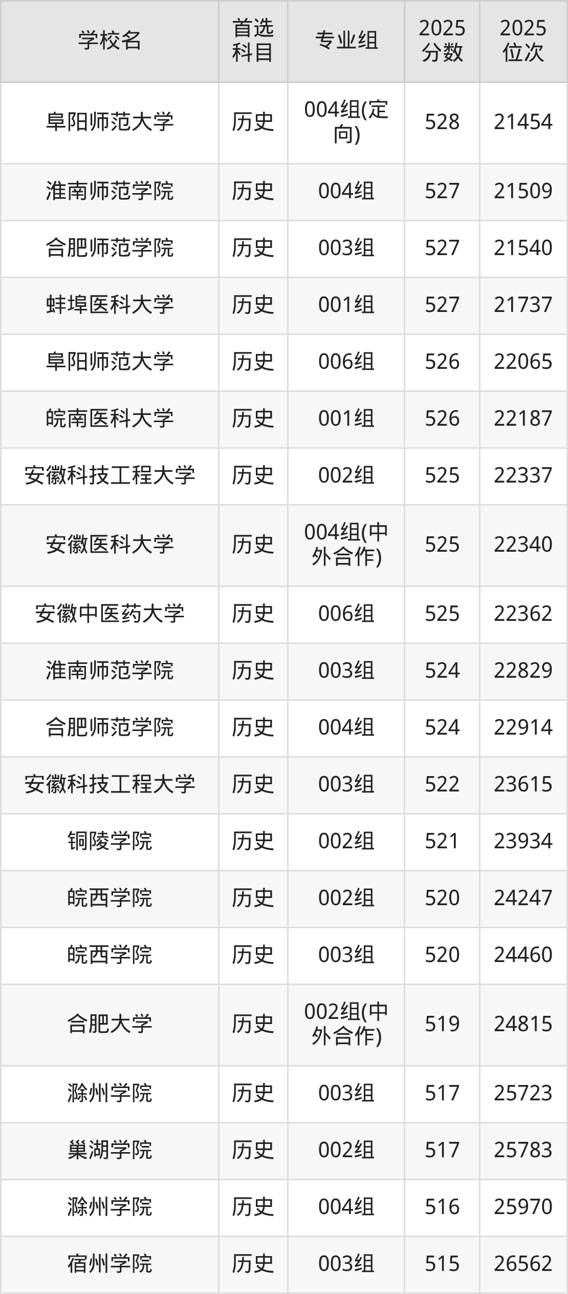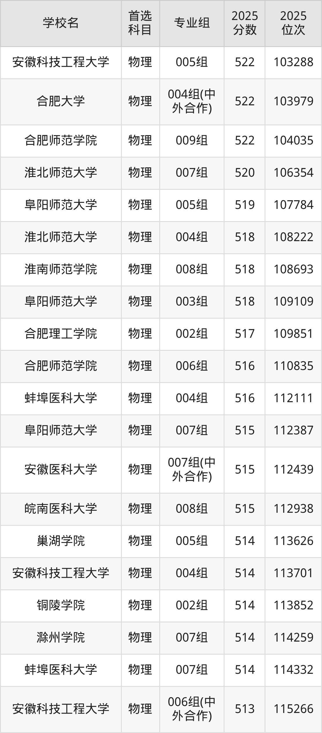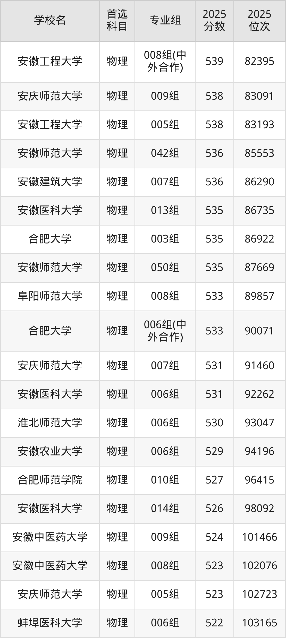 按照安徽省所有公办本科大学2025年在安徽省录取分数线高低排名,为大家整理以下内容。