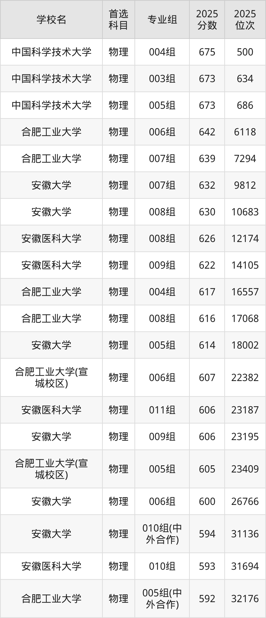 中国科学技术大学004组:675分、位次500名;