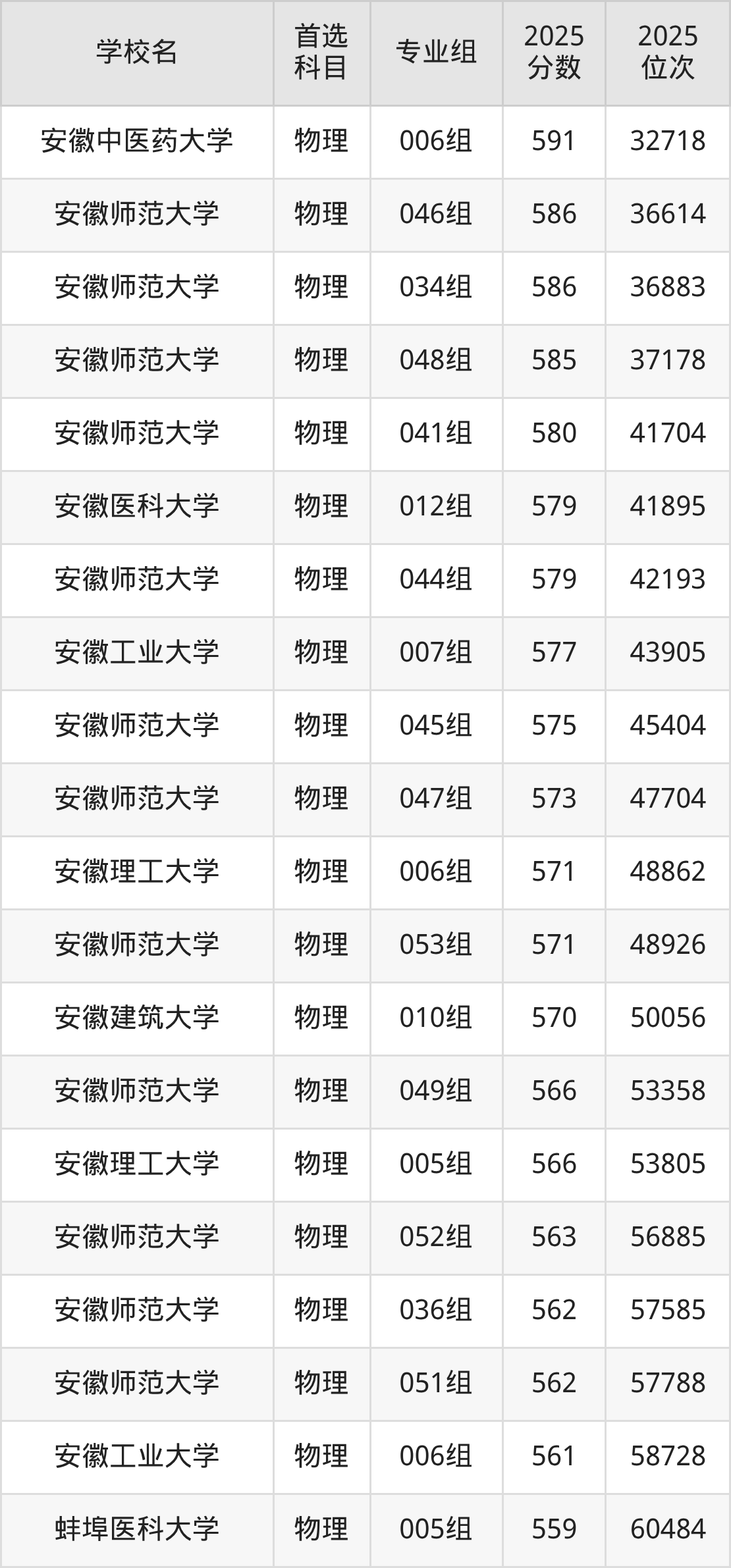 合肥工业大学001组:591分、位次4693名;
