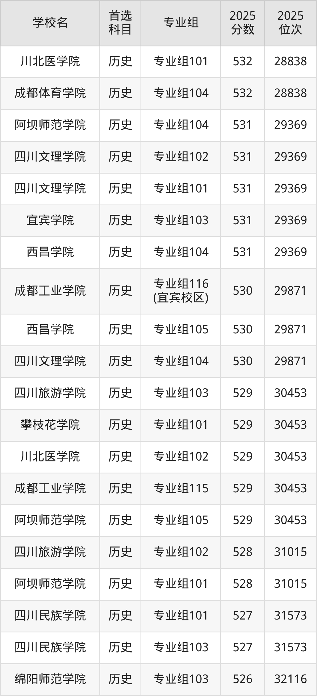 四川文理学院专业组101:531分、位次29369名。