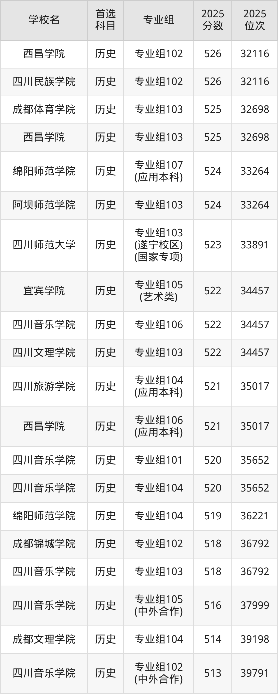 四川文理学院专业组102:531分、位次29369名;