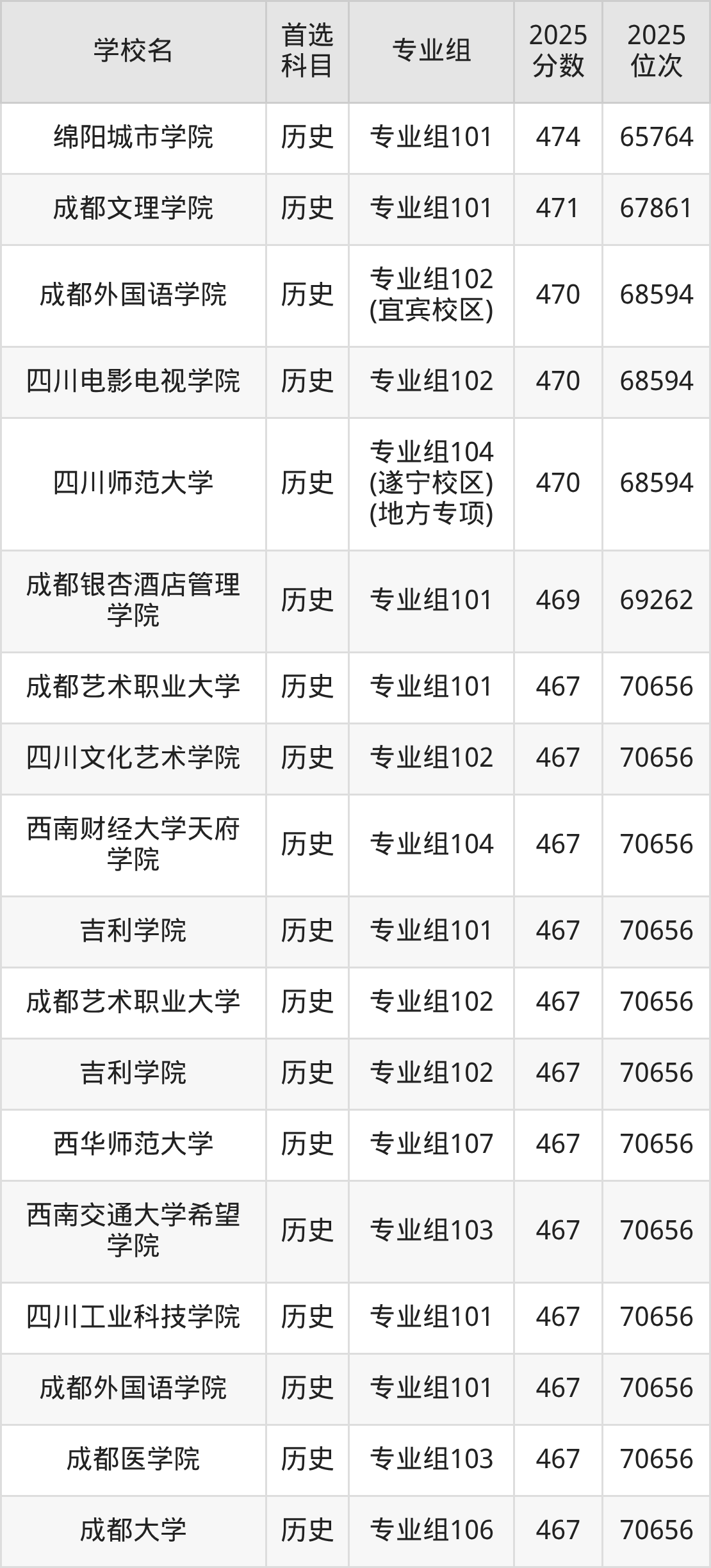 四川最好考、收分最低的二本大学是:成都艺术职业大学(专业组101)、四川文化艺术学院(专业组102)、西南财经大学天府学院(专业组104),2025最低分467分、最低位次70656名。