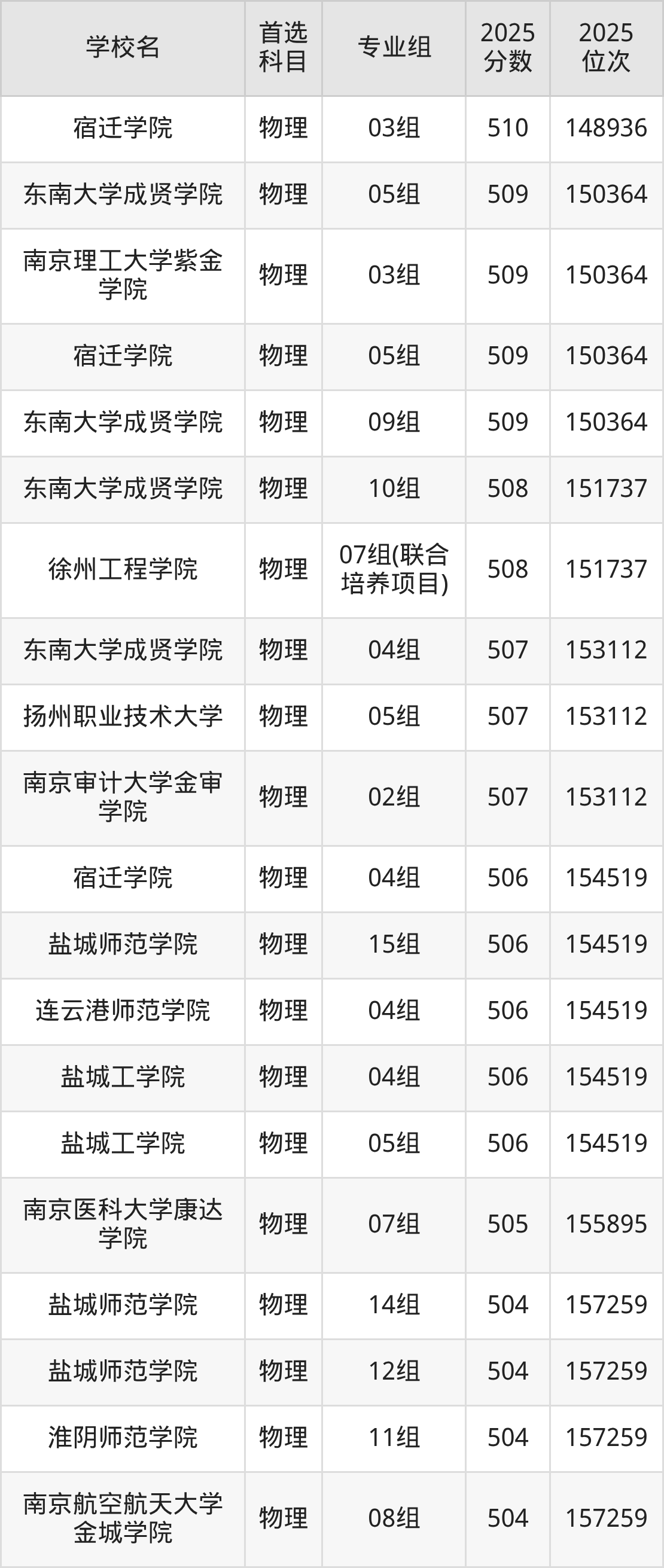 东南大学成贤学院07组:517分、位次139203名;