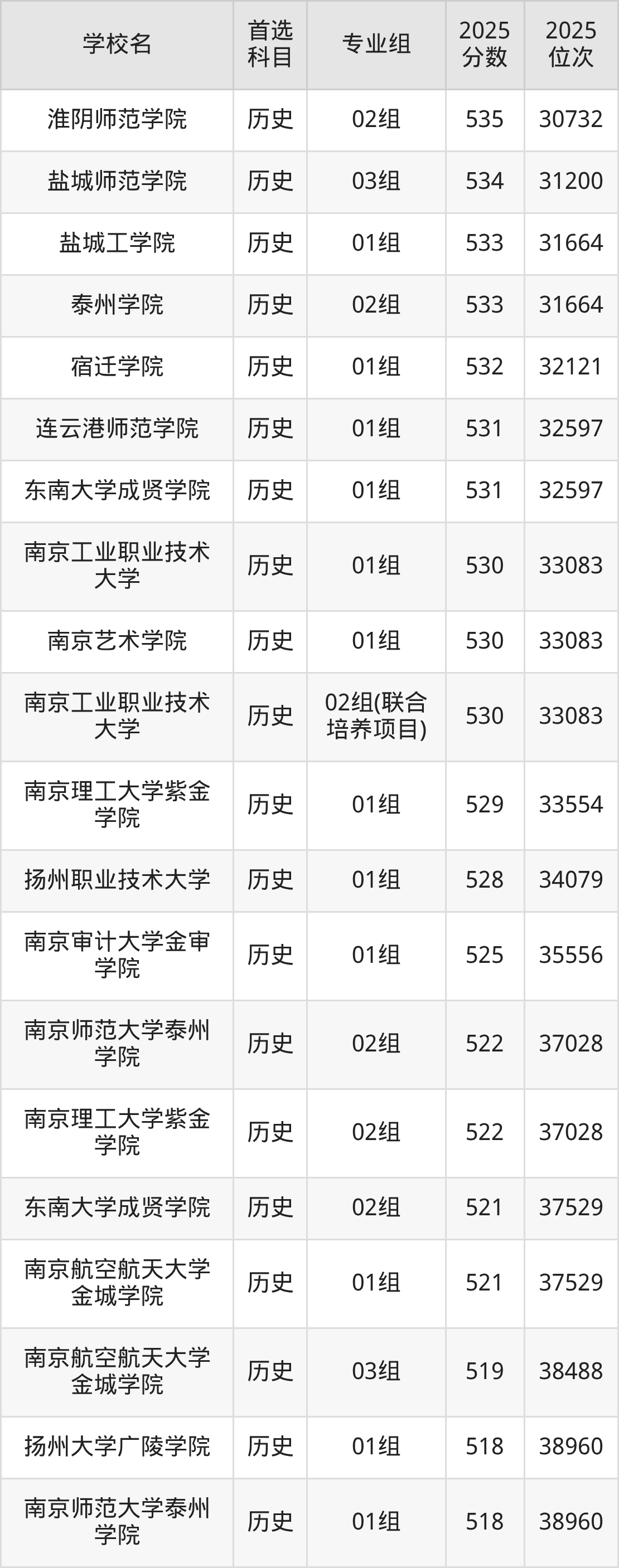 淮阴师范学院02组:535分、位次30732名;