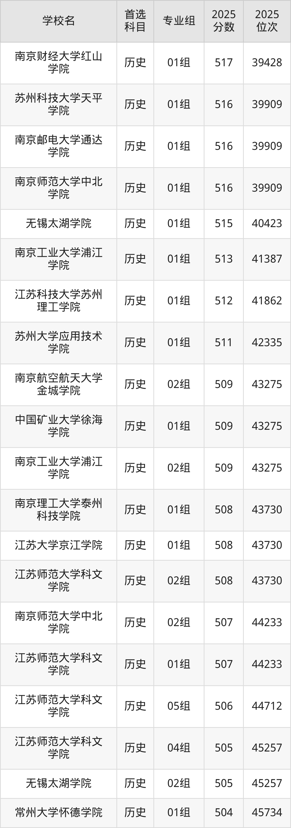 淮安大学02组:517分、位次139203名;