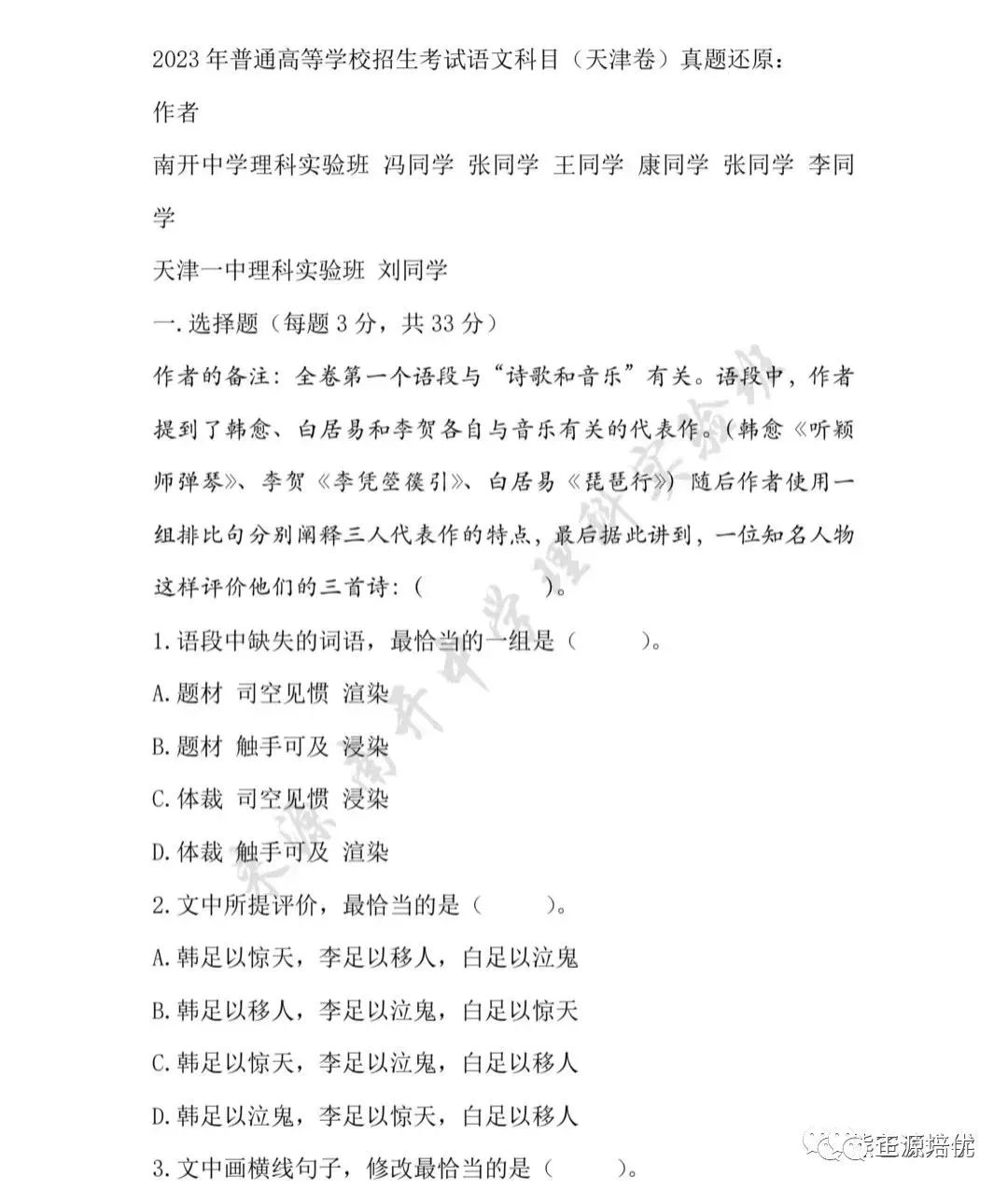 2023年天津高考将于6月7日进行考试,历年来天津高考试卷都由天津市自行命题,为了方便天津考生考后对答案,本文整理了2023年天津高考语文试卷真题及答案,下文附上2023年天津卷高考语文供天津考生参考,一起来看看2023年天津高考语文真题试卷及答案解析吧!