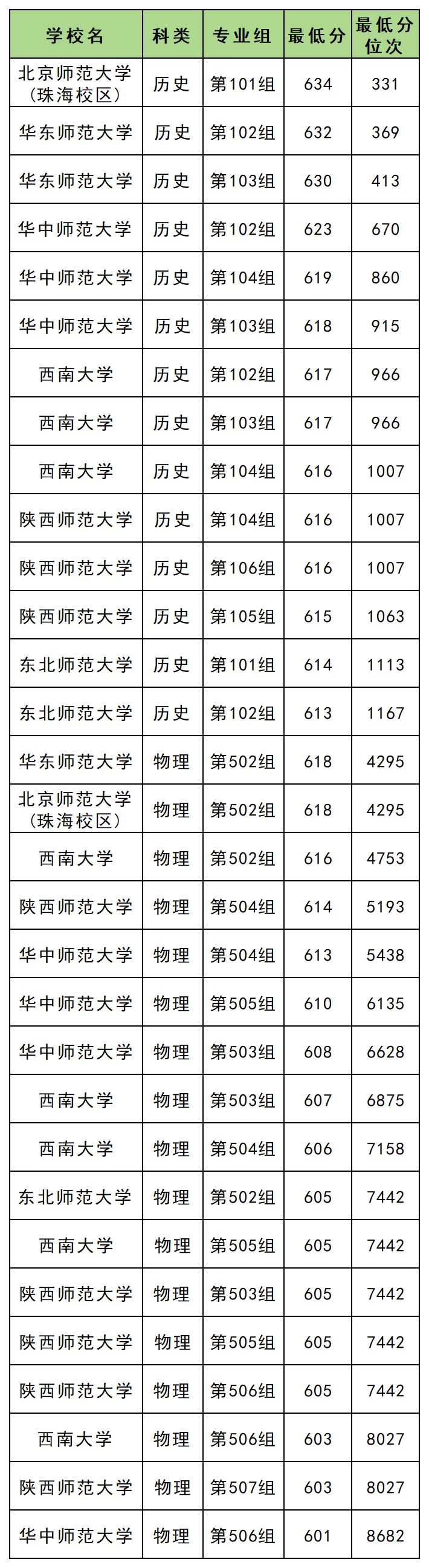 陕西师范大学:物理类最低分为603分、历史类最低分为615分