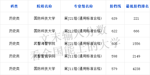 国防科技大学:招收人数9人,投档最低分579分,最低投档排名4238。