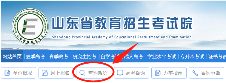 1、考生打开山东省教育招生考试院官网,在首页找到“查询系统”点击;