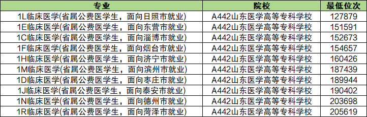 临床医学专业:2023年录取需面向日照市、东营市、淄博市、烟台市、济宁市、滨州市、枣庄市等地就业,分数最低为面向菏泽市就业。