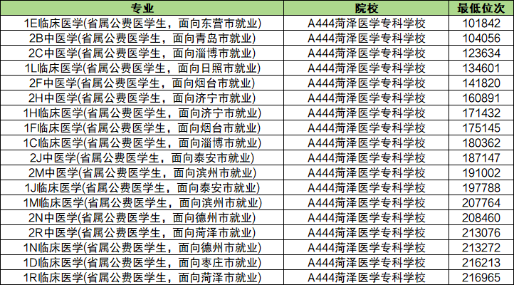 临床医学专业:2023年录取需面向青岛市、淄博市、烟台市、济宁市、泰安市、日照市、滨州市、菏泽市、德州市就业,在菏泽市就业的分数线最低,需要539分。