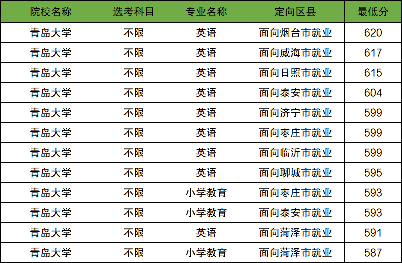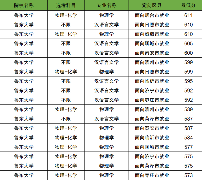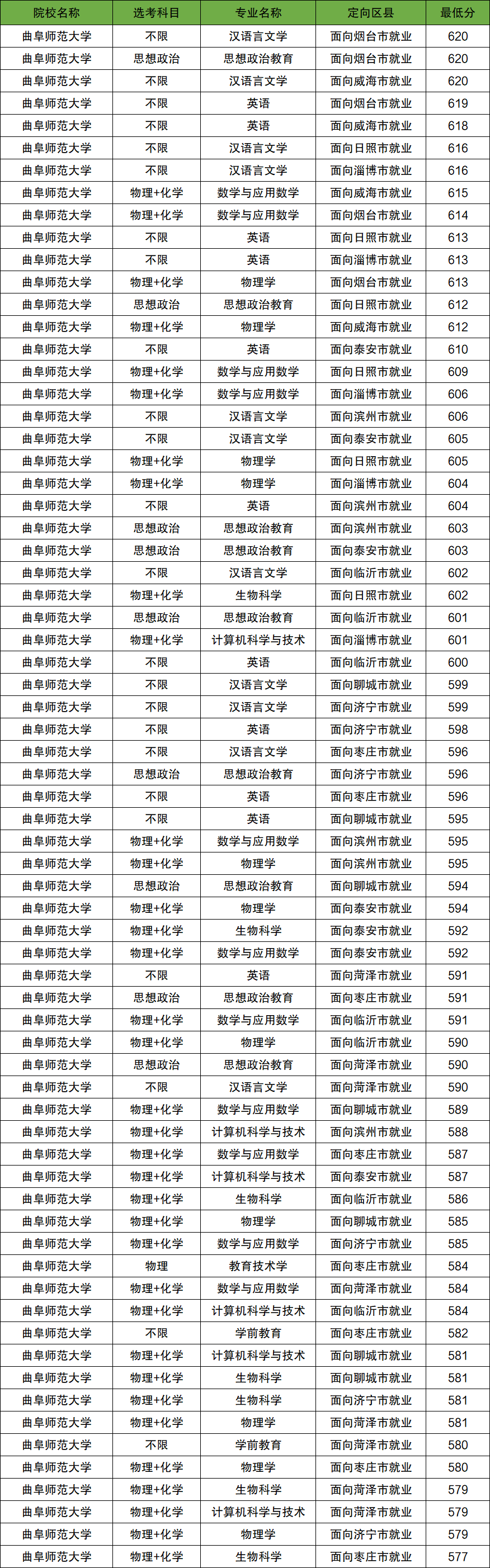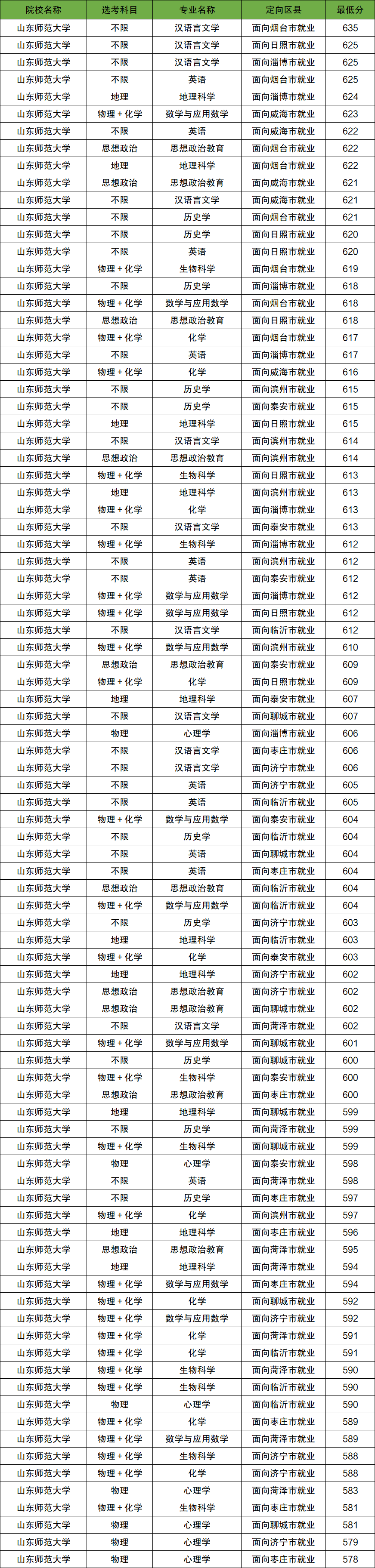 2025年山东国家公费师范生分数线只有部分院校公布,具体分数线为: