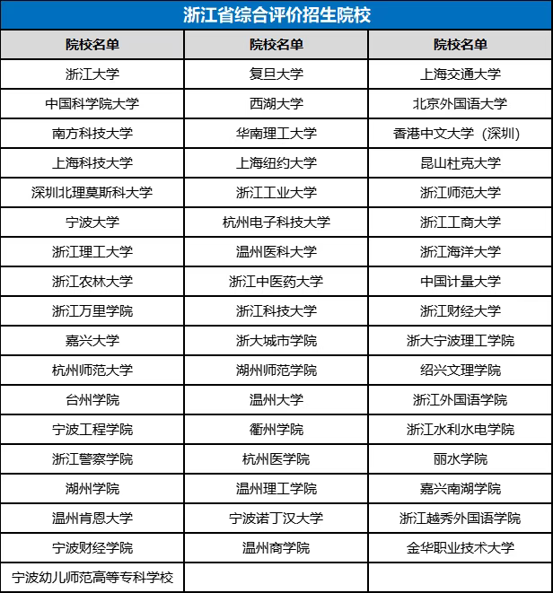 浙江省2026年三位一体综合评价招生院校名单预计有52所,包括昆山杜克大学、上海纽约大学、杭州电子科技大学、浙江理工大学、浙江工商大学等。