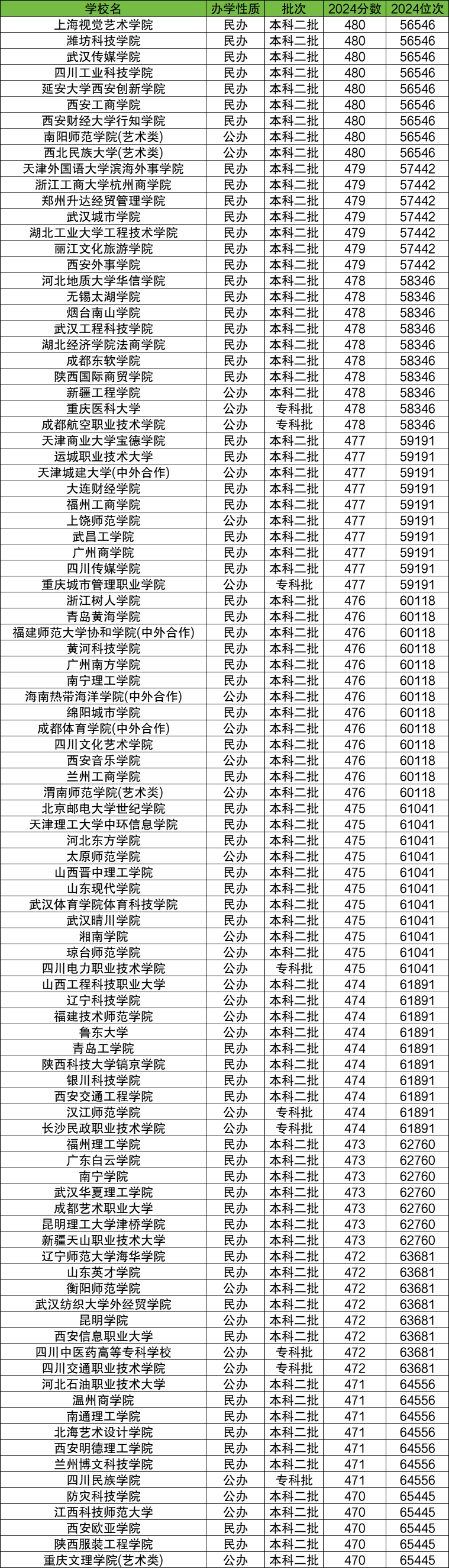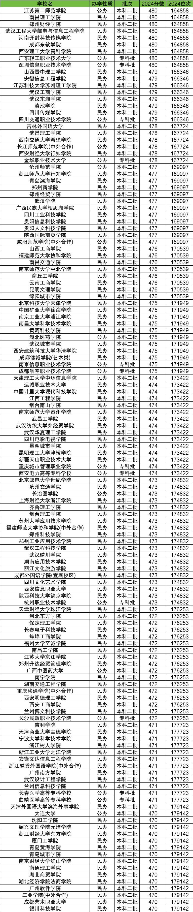 当然这只是老师参考四川省2024年高考录取数据整理的,每个地区470到480分能上的大学并不相同,还需要具体分析。