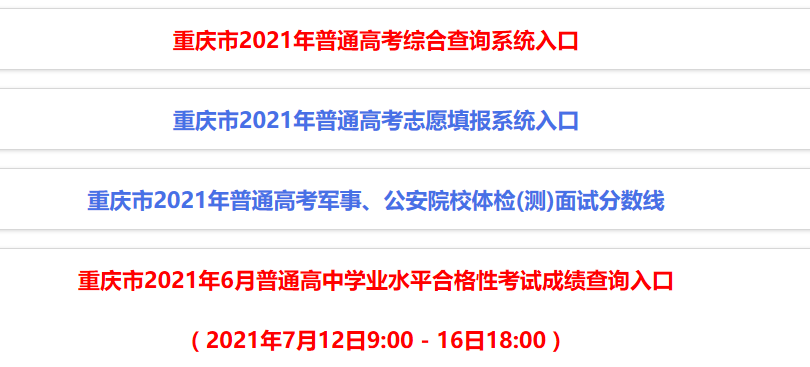 目前重庆市教育考试院已经公布了重庆市2021年高考录取时间安排,重庆市2021年普通高校招生录取工作已经正式开始,将于8月16日结束。其中: